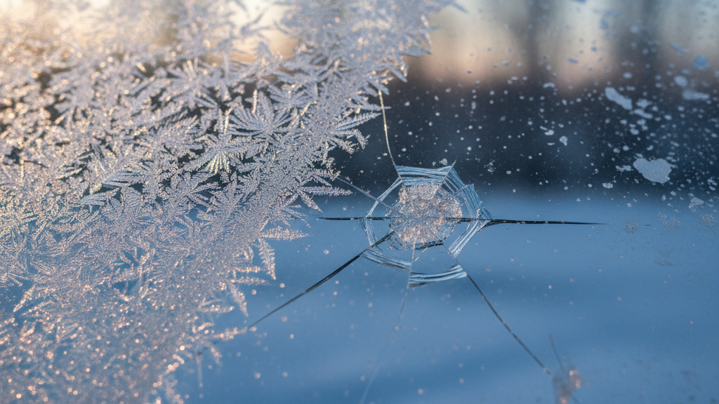 • Snow and ice removal: Scraping a frozen windshield or using hot water to defrost can accelerate spreading cracks.